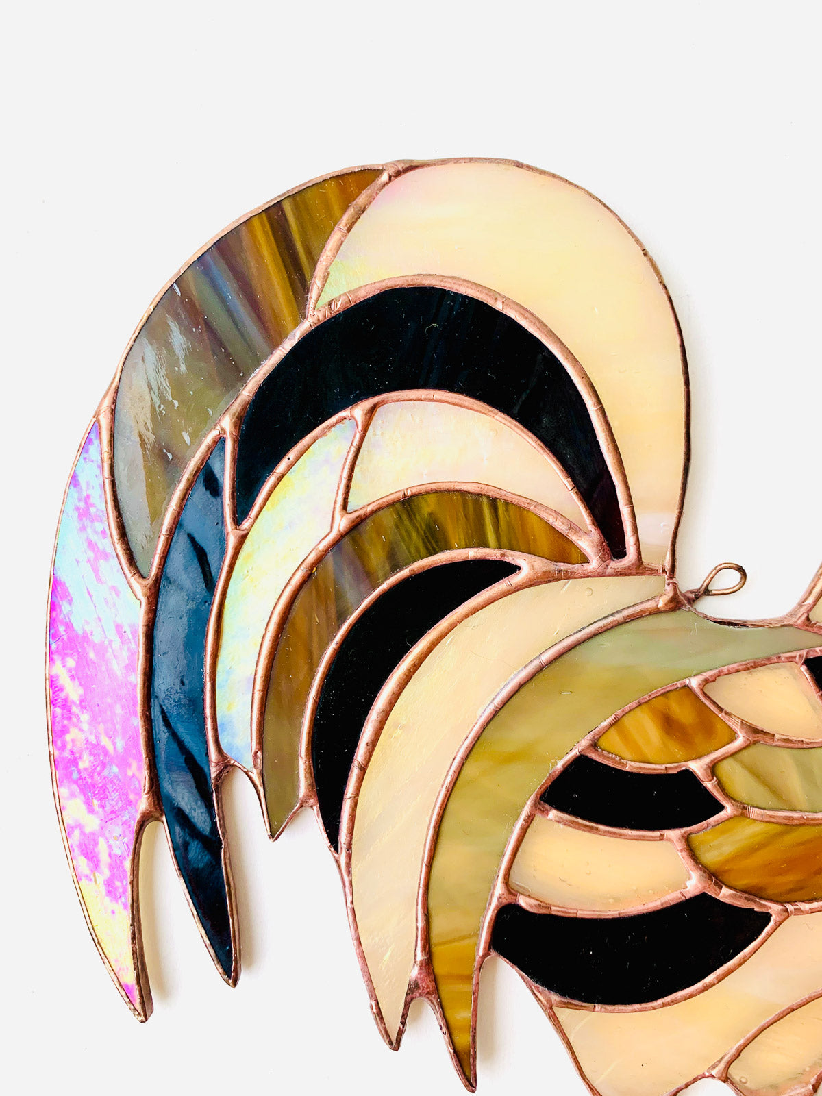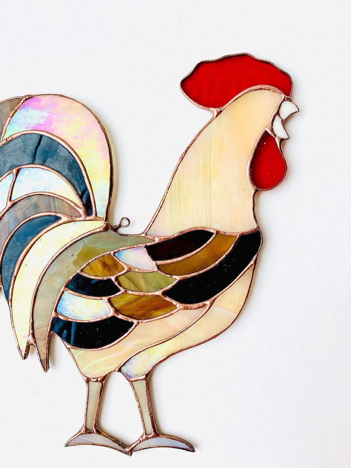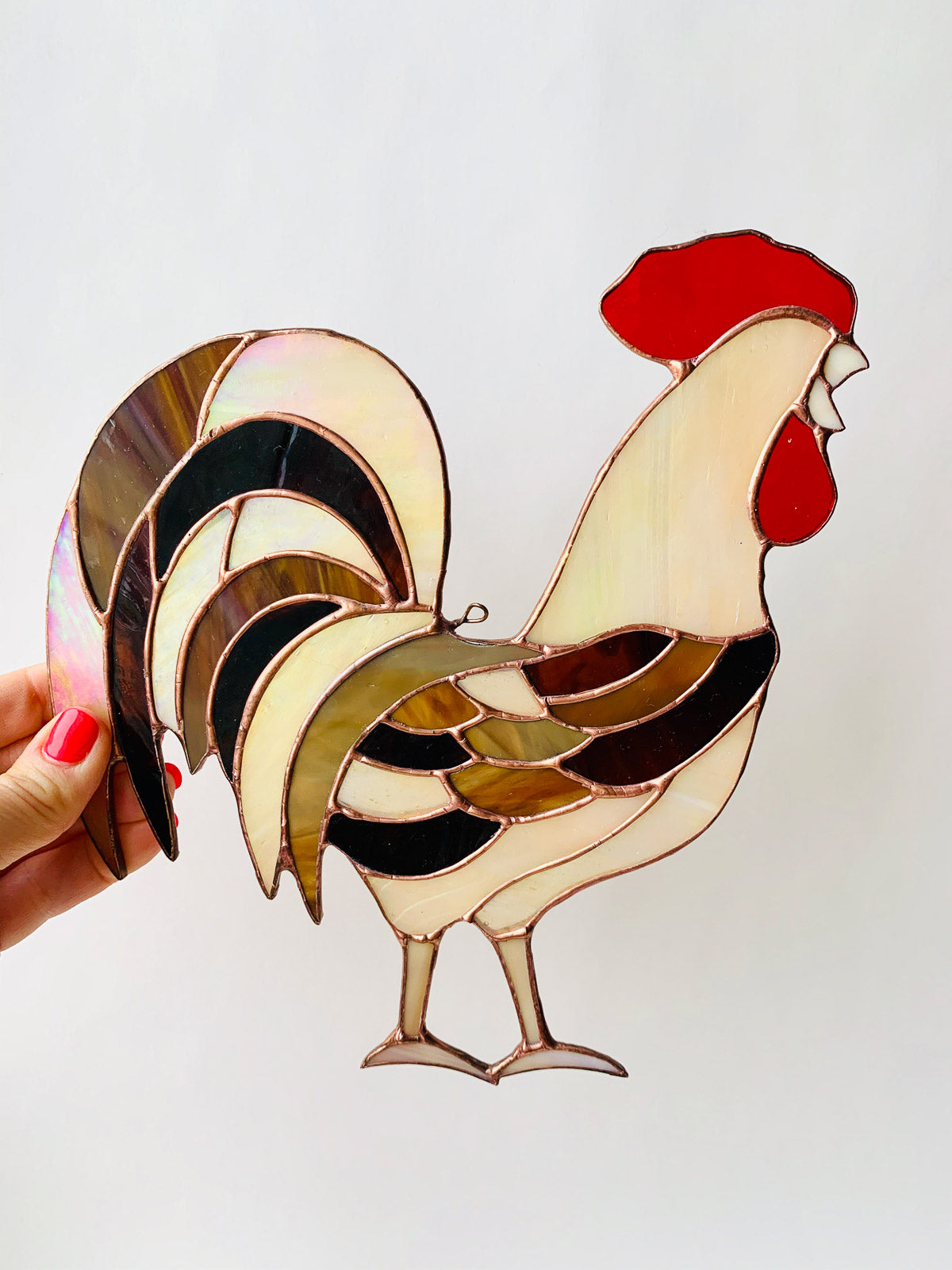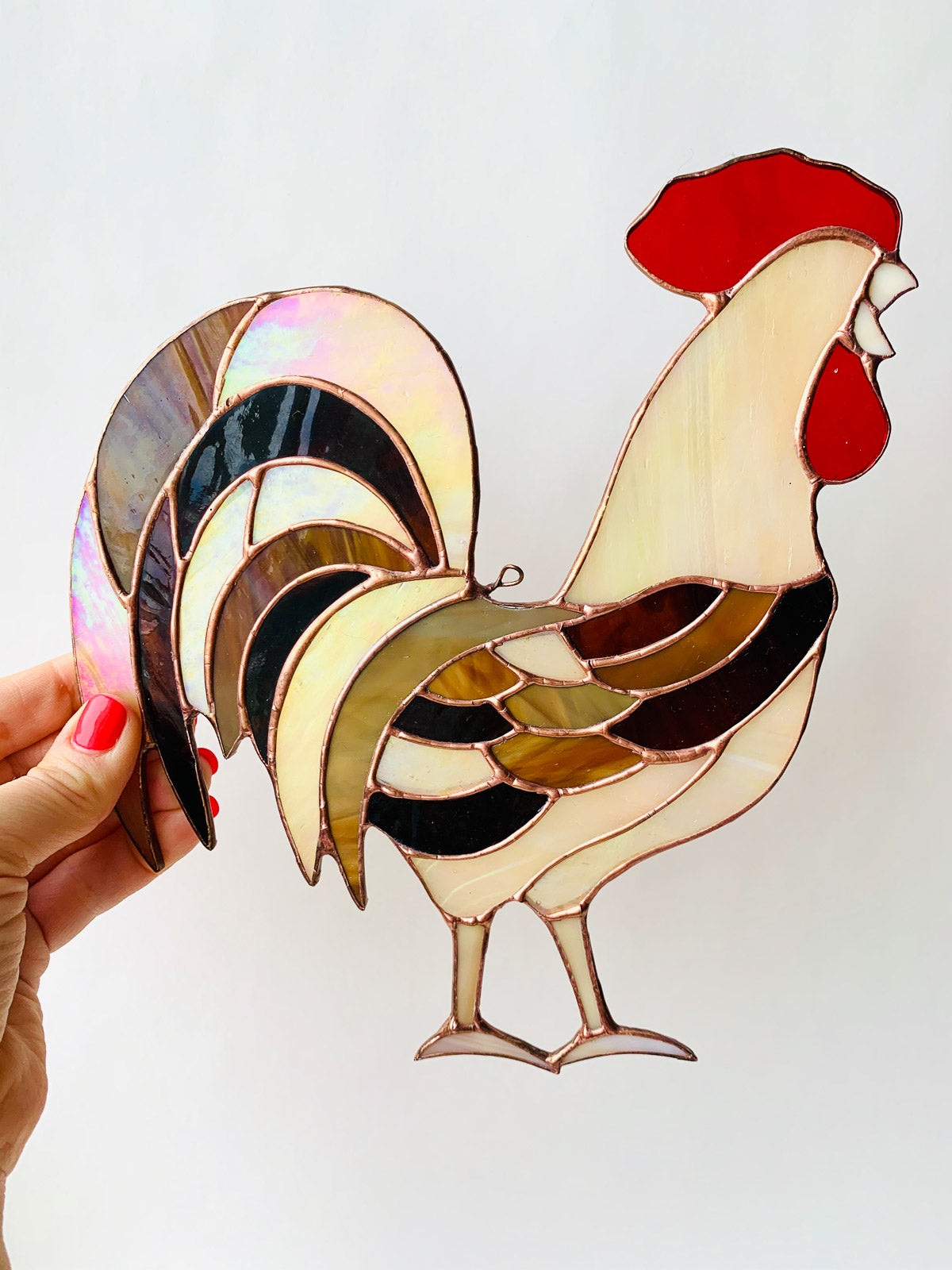 Piękny witrażowy kogut zawieszka wykonany ze szkła witrażowego najwyższej jakości metodą Tiffany.Kogut gotowy do zawieszenia.Wymiary ok.21 cm x 19 cmCena za 1 szt.